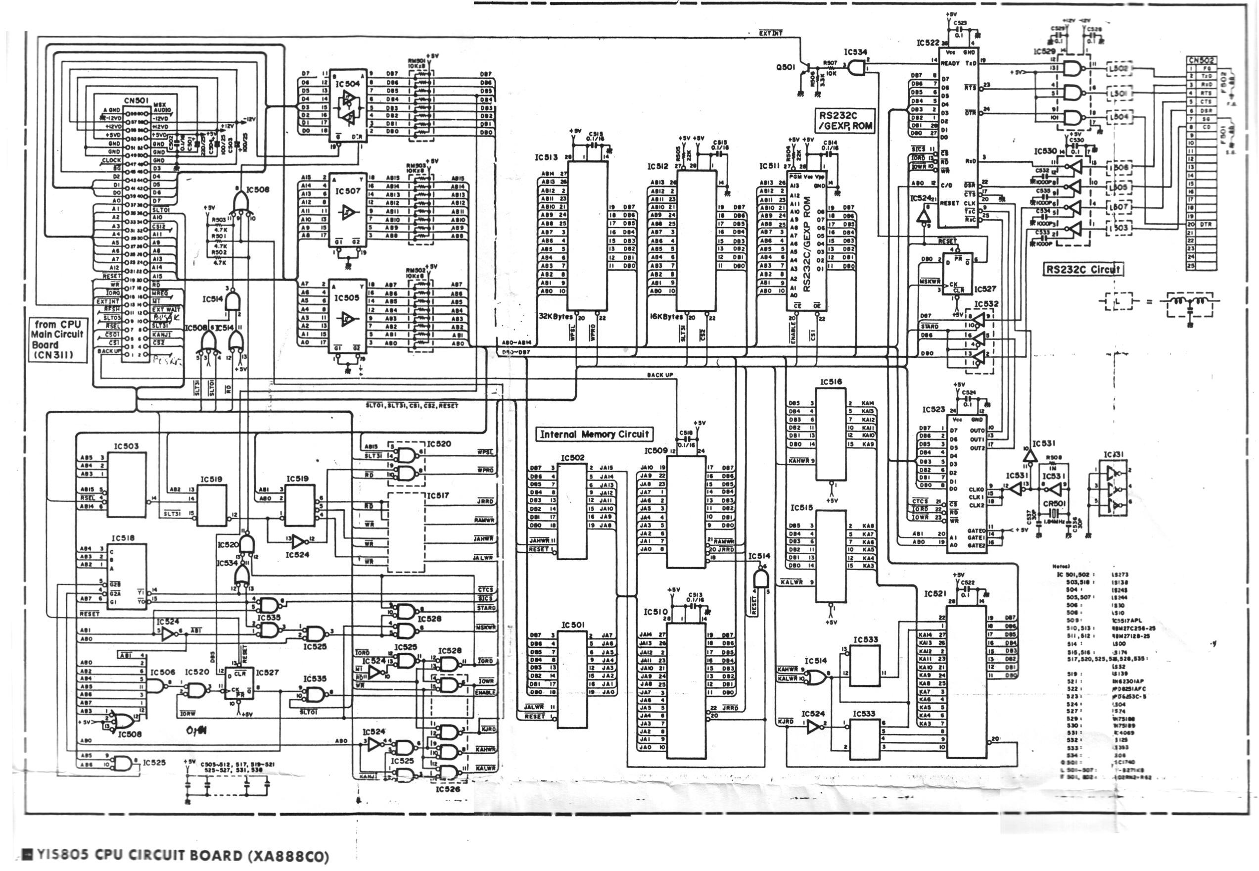 | Yamaha YIS-805 CPU Circuit Board Schematic Owner: Eric Boez, Created: 2019-04-06, Version 1 - 2019-04-06 |