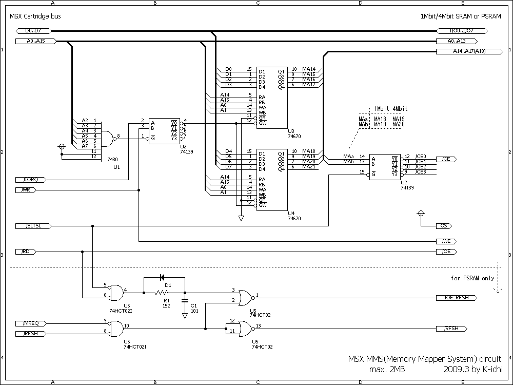 | 1MB Ram Cartridge Schematic Owner: Eric Boez, Created: 2019-04-06, Version 1 - 2019-04-06 Design by M FUJIMOTO & MKT 1994 |
